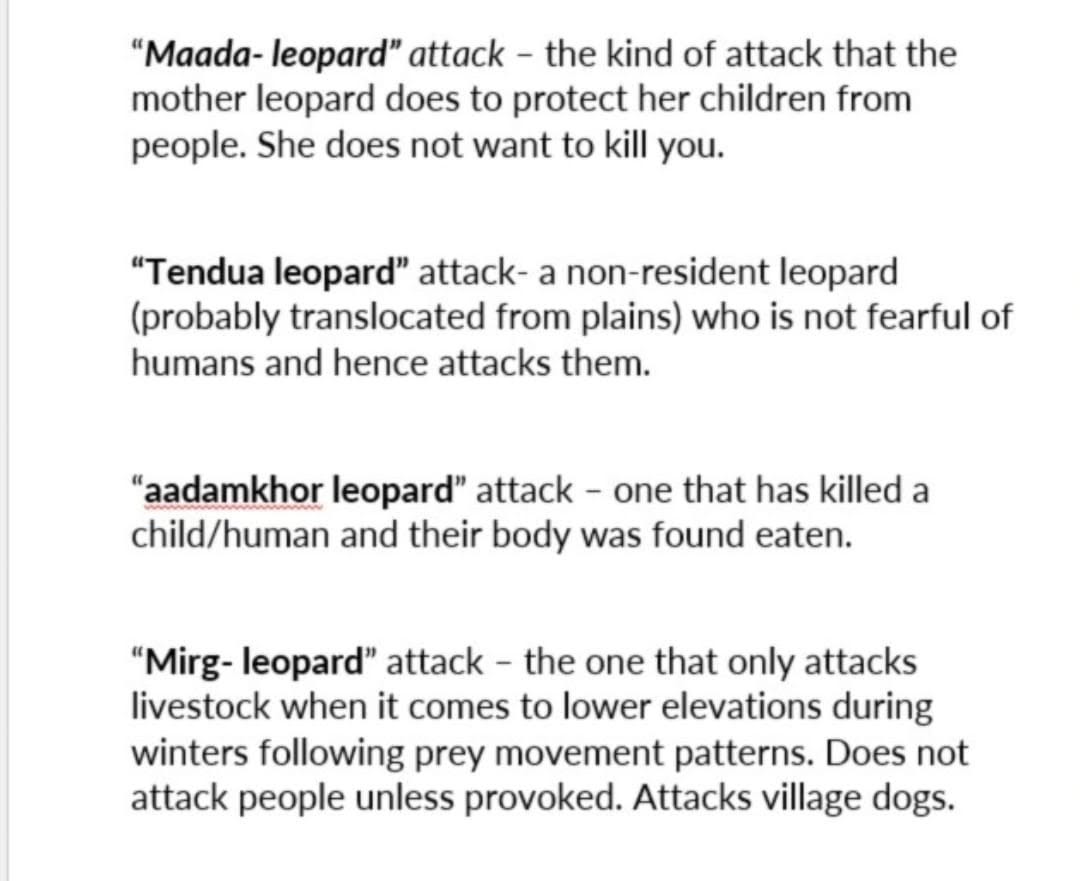 On the ground, people name and grade encounters with care. A maada-leopard is a mother defending her cubs. A tendua is a transient outsider, bolder and unsettled. An aadamkhor is the rare killer whose victim was found eaten. A mirg-leopard follows prey to lower slopes, takes livestock or village dogs, and keeps away from people. In their studies, Shweta Shivakumar and Dhee show how this vocabulary lays out a spectrum of intent and risk, moving from defence, through bold unfamiliarity, to predation on humans, and to predation on other animals.