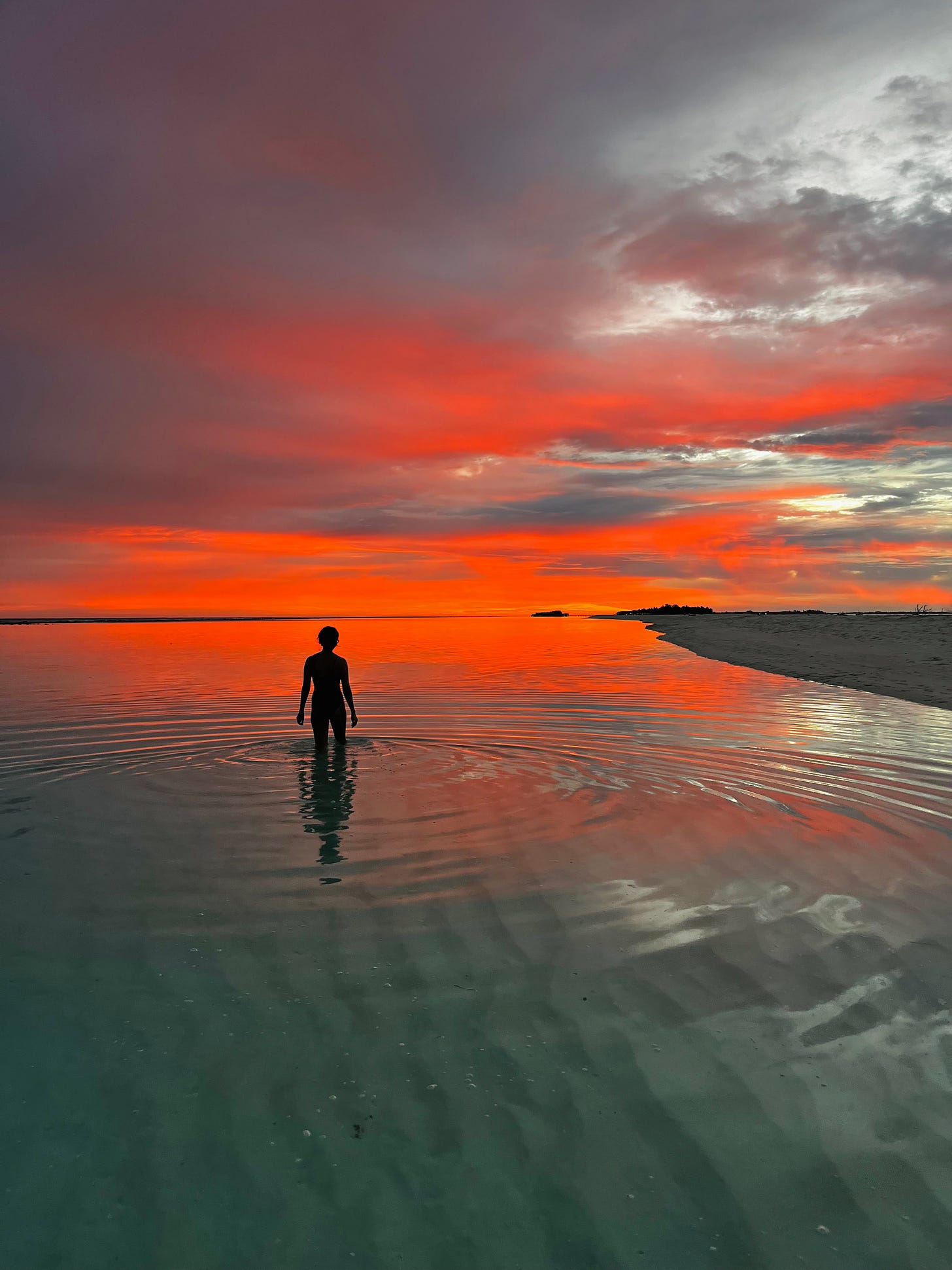But having cumulatively done ~100 dives, we’ve also come to realise that the joy of diving prevails even when you’re not 75ft under water. A year ago, we had the privilege of spending a week on a remote island in the Maldives—so remote that it didn’t even have Google Maps. While we were there with the sole intention of diving, the seemingly ancillary parts of our expedition are etched as deeply in our memories as the rest of it— the Sri Lankan chef at our resort who greeted us everyday after our dives, and went out of his way to make vegetarian food. Seeing a mom and dad take turns diving on alternate days so one could stay ashore with their baby—always making sure to be at the pier in time to receive the other as we reached back from our dives. And finally, this otherworldly sunset we saw at the southernmost tip of the island.