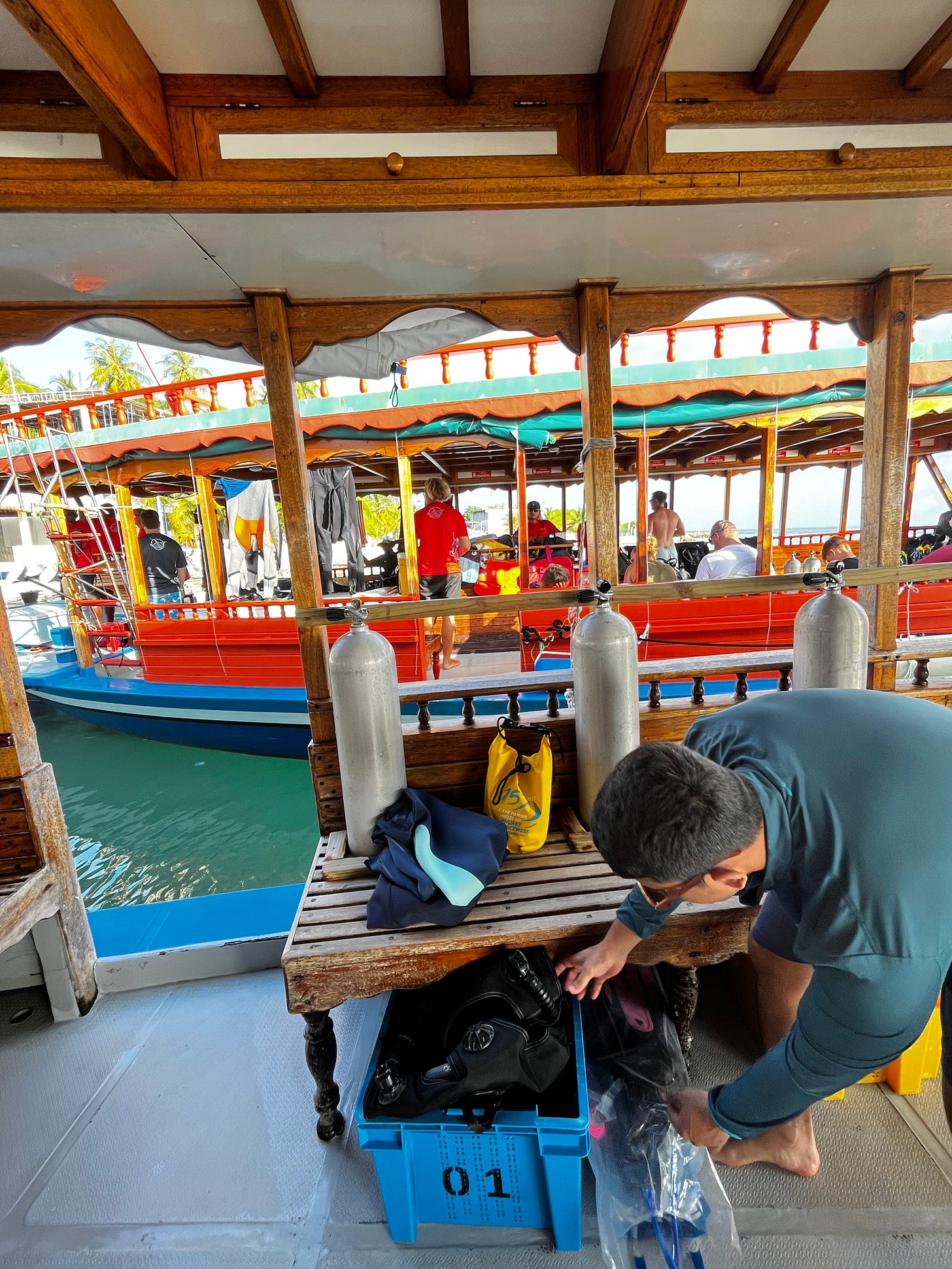 When you reach the harbour, you see the old fishing vessel that has been given a new lease on its life. A Dhoni that was once brimming with nets and harpoons has now been taken over by oxygen cylinders, dive computers, and fins and wetsuits of every size imaginable. Maybe you can teach an old boat new tricks.