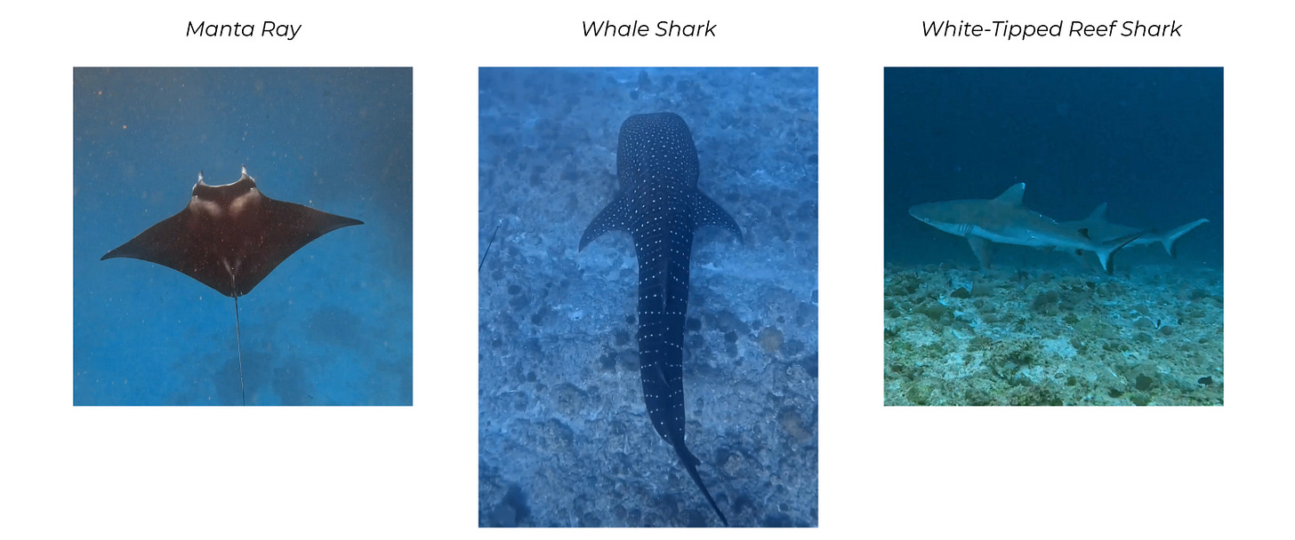 This new society includes colourful and bleached corals, a school of thousands of neon yellow goatfish, an eight metre long gentle whale shark, a pair of playful eagle rays, a misunderstood white-tipped reef shark, all living in a relation with one another that our surface-level language has never quite been able to capture.