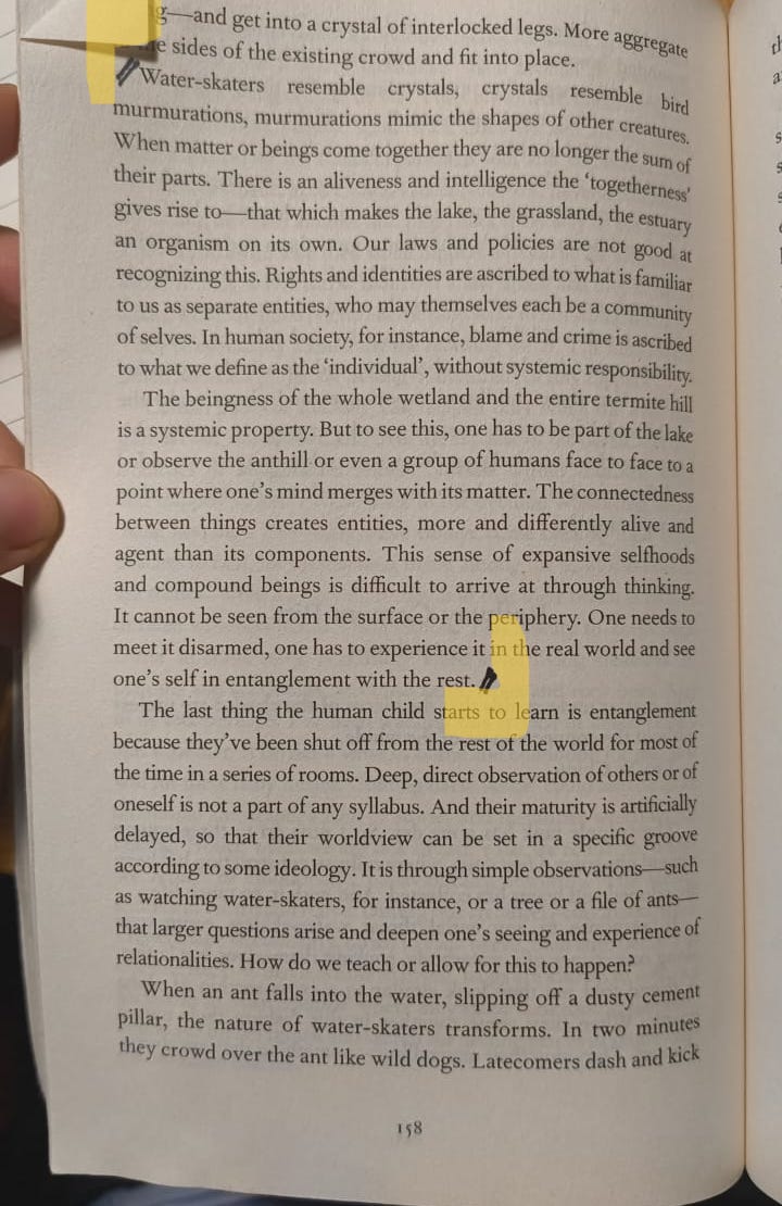 It is a quality of attention that ‘does not separate itself from action.’ And this observation-action helps see oneself in the throes of entanglement with the rest; and participate in this enmeshed experience more meaningfully, mindfully and justly.