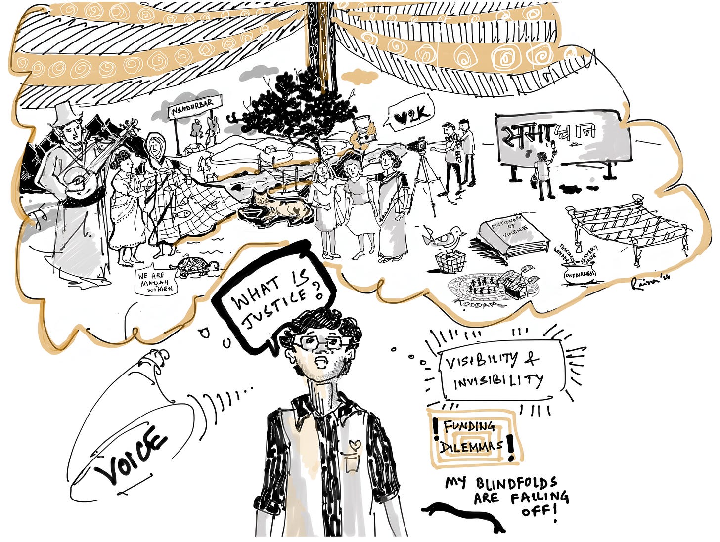 To understand justice, one must move beyond the conventional scales of rights and wrongs into a wider sphere of affective lived realities, unveiling the structural and personal blindfolds of the domain of law. Acknowledging the subjective interpretations of what justice means in the everyday experiences of diverse sections of society gives us a people’s repository of vocabularies around justice – one that is rooted, contextual and emergent from the grassroots.