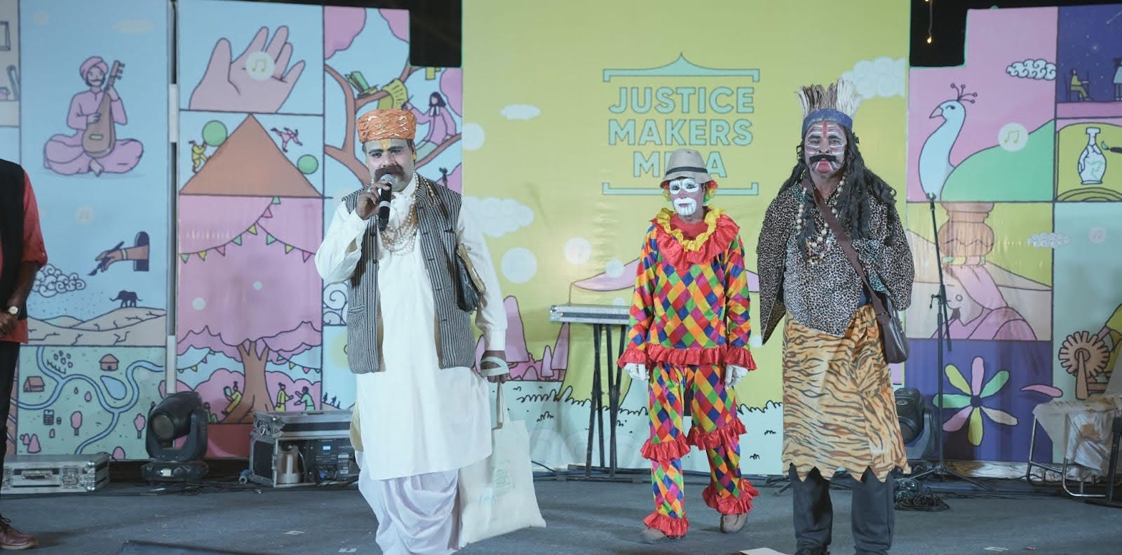 The Mela opened on 6 December, Mahaparinirvan Diwas, the day that marks Dr B. R. Ambedkar’s passing. It felt important that the Justicemakers Mela brought Behrupiyas into the frame. While “Behrupiya” names a profession, the people who carry this art usually belong to specific communities such as the Bhand, Naqqal, Bediya or Bazigar. Their social story is one of sharp rises and falls.